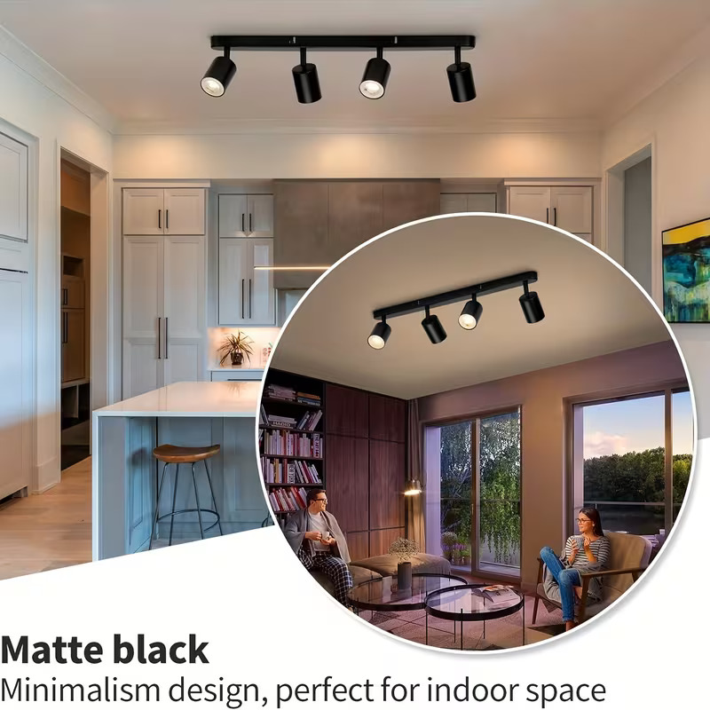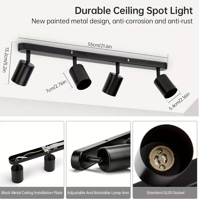 LED Ceiling Light with 4 Bulbs, Rotatable GU10 Spotlight Bar Pendant Lamp in Black & White, Modern Kitchen Bedroom Living Room Ceiling Fixture (Bulbs Not Included)