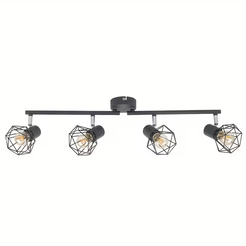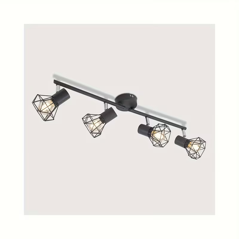 1pc HIMGOR Industrial 4-Light Semi-Flush Mount Ceiling Light, Black Metal Cage with E14 Base, Detachable Design for Bedroom, Living Room, and Dining Room Hallway - Bulbs Not Included, Installation Accessories Included, Ceiling Lamp for Living Room
