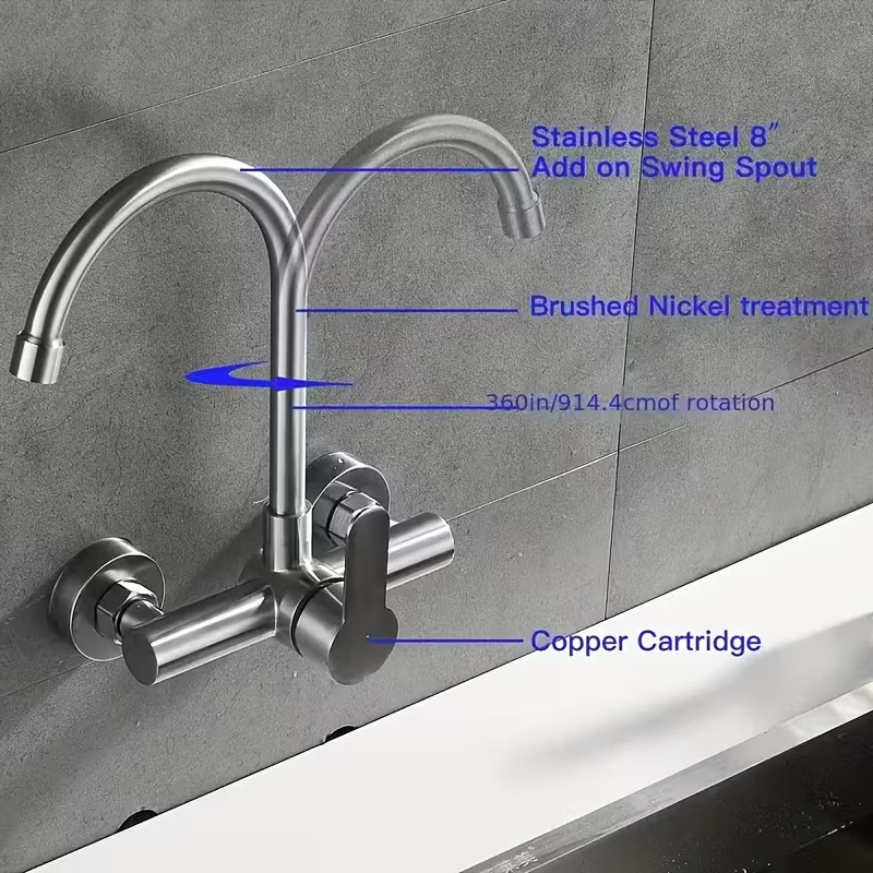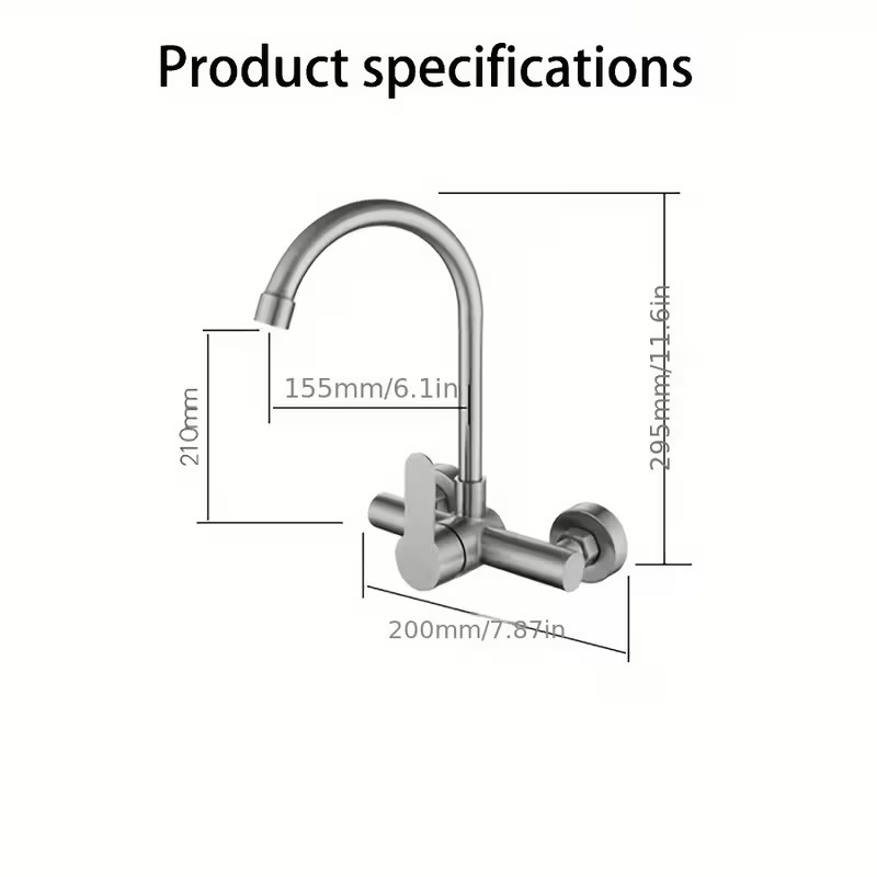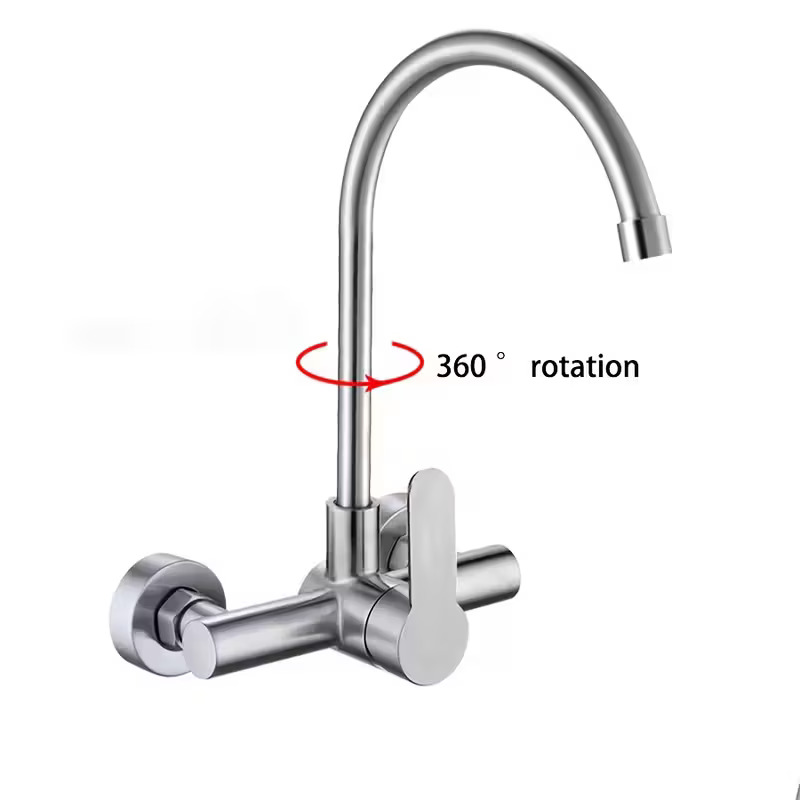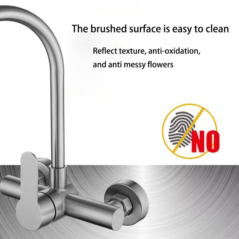 Stainless Steel Double-Hole Wall-Mounted Water Faucet - 201/304
