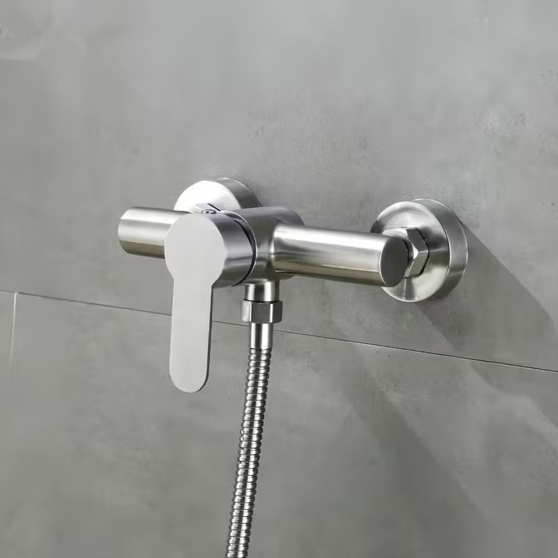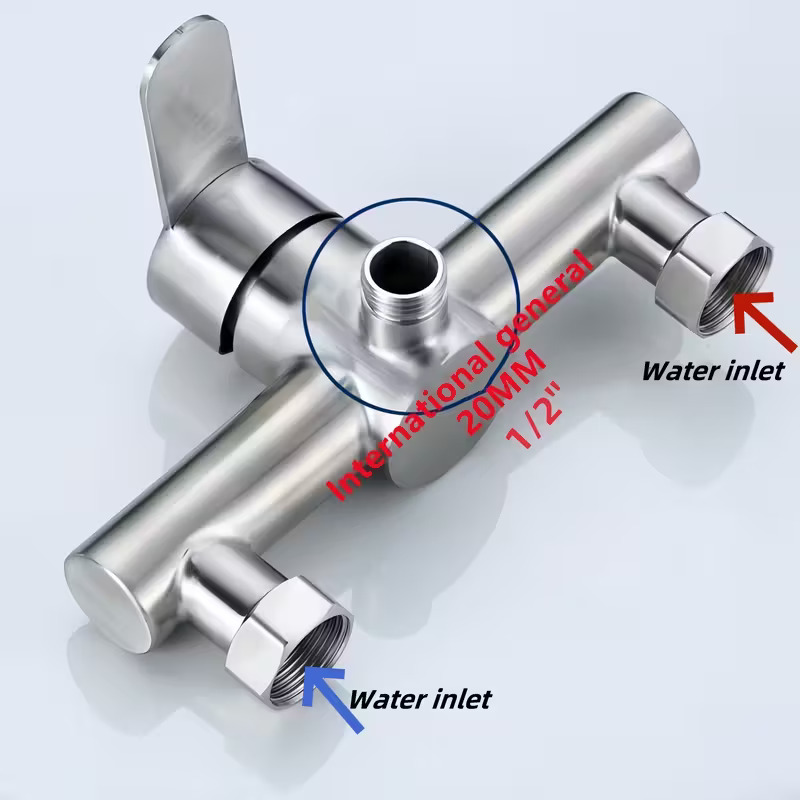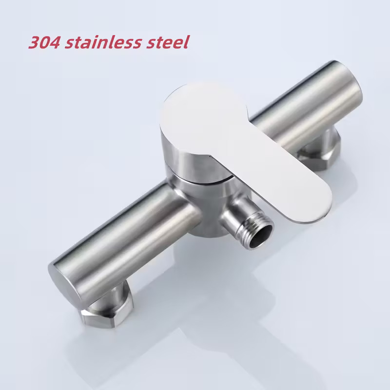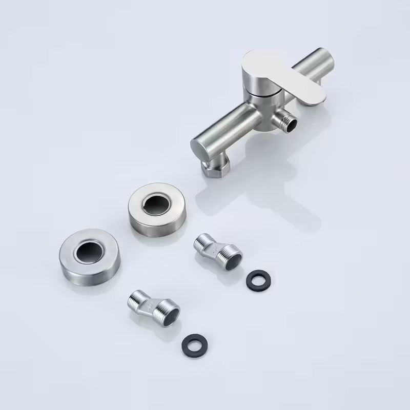 Stainless Steel Wall-Mounted Shower Bathtub Faucet with Temperature Control Knobs, Splitter Valve & Brushed Finish - Classic Design for Bathroom Sink or Shower Tub, Bathtub Accessories, Sink And Shower Fixture, Modern Aesthetic, Durable Construction, Smooth Finish, Contemporary Aesthetic, Highquality Construction, Plumbing Fixtures